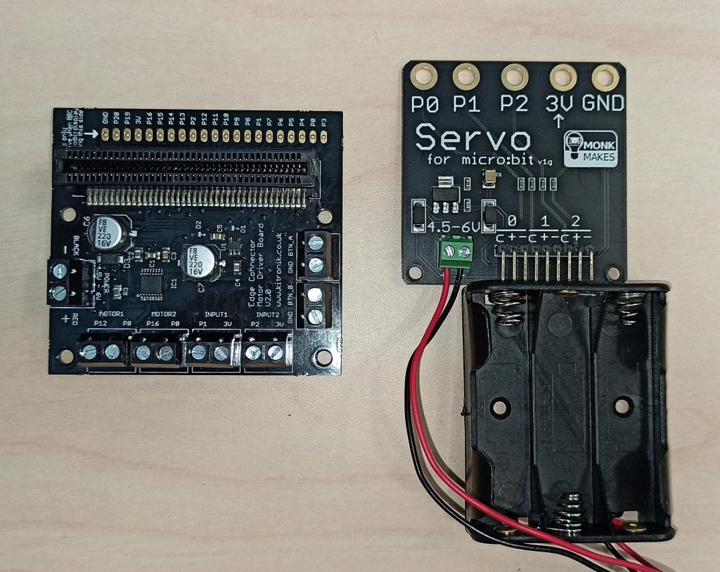 Next- to control a motor or servo. For either of those you need attachments called shields. There are separate ones for motors and servos, however there are certain robotics shields made for the microbit which have both motor and servo connections which can be very handy. Check manufacturers for available extension prior to purchasing. Some of the manufacturers will leave you high and dry when it comes to software.